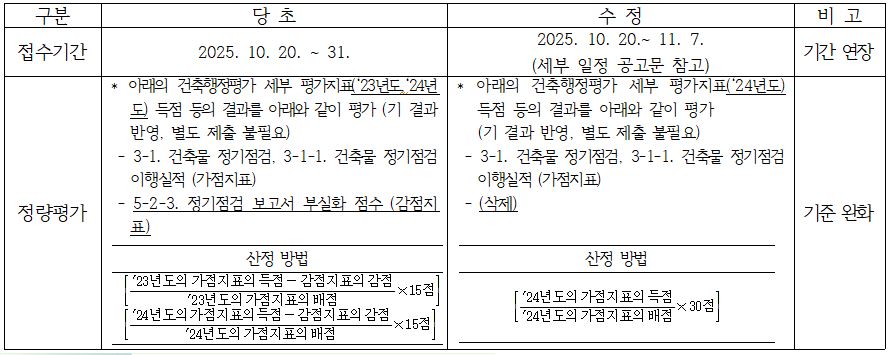 | [수정공고] 「2025년도 건축물관리제도 이행 우수기관 경진대회」 | 관리자 | 2025-10-28 |